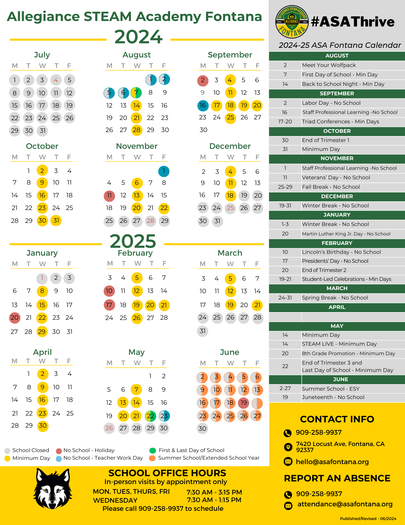 ASA Fontana 2024-2025 Academic Calendar